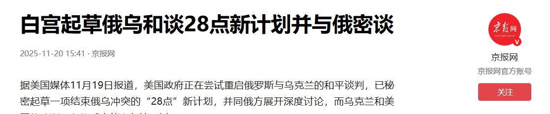经过一系列打击后,美国总统特朗普终于意识到乌克兰无法赢得俄乌战争,并决定减少对乌支持。28点和平计划由此诞生,该计划已通知乌克兰,并由美俄高级官员共同制定。
