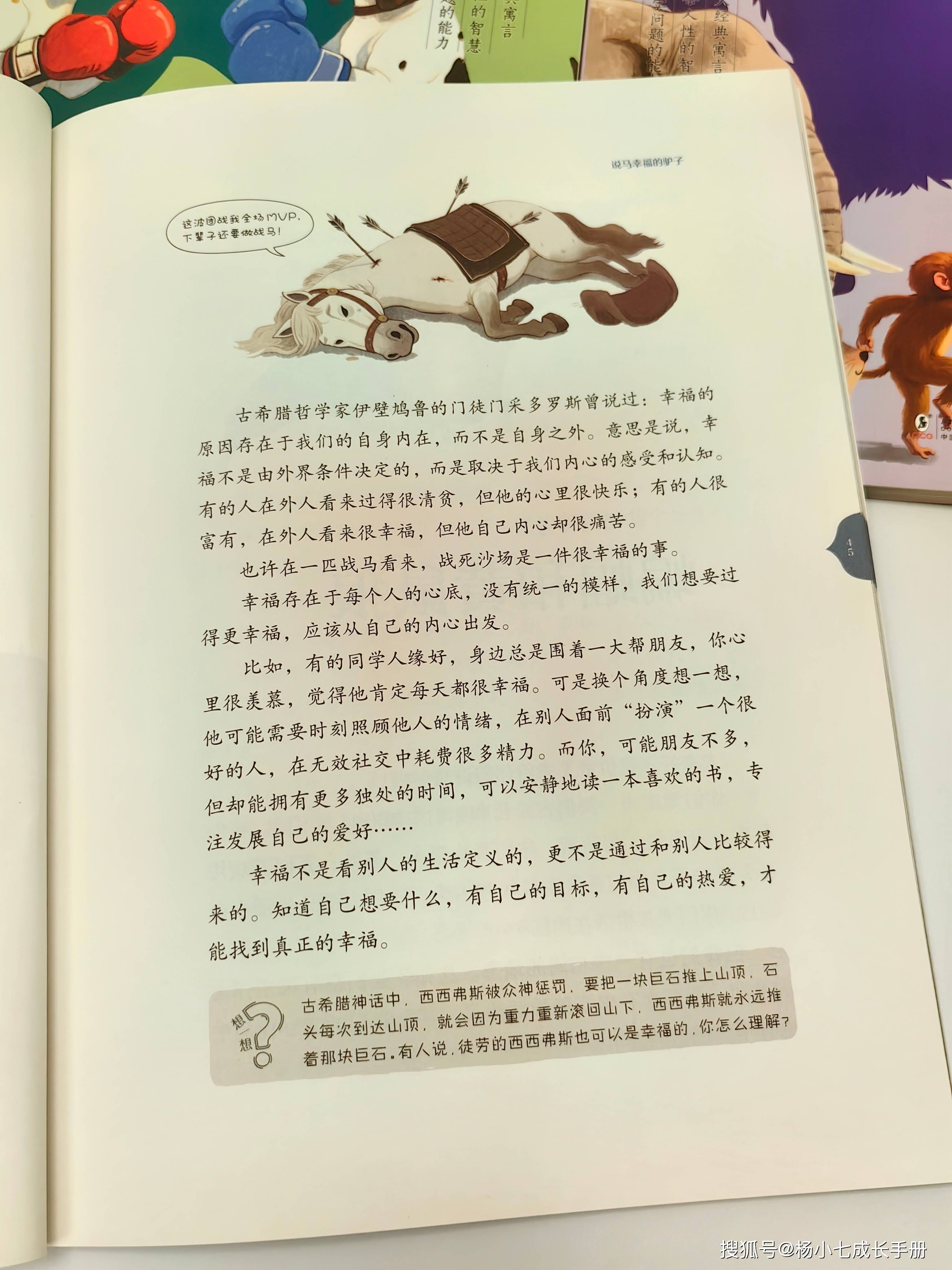这几天陪儿子读了一套很棒的书《世界寓言里的思辨课》,不仅集合了世界四大寓言家的经典故事,解读其中的寓意,还有精彩的思辨课堂,教孩子辩证地、多角度地看待问题。