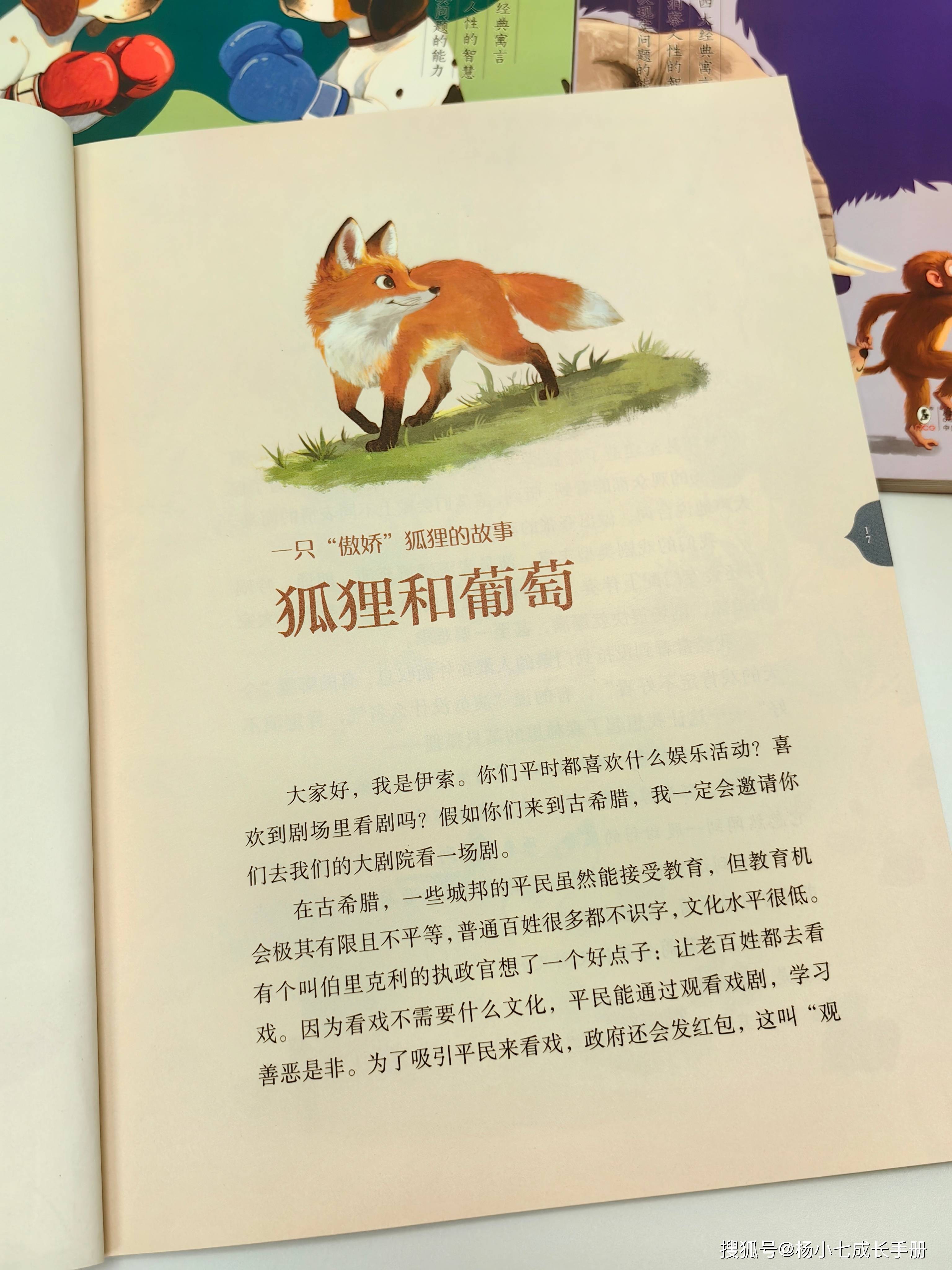 比如大家耳熟能详的故事《狐狸和葡萄》,先讲述了古希腊为了提高平民的文化水平,吸引他们来看戏,建造了很多剧院,戏剧类型也很丰富,场场爆满,导致很多人抢不到门票,由此引出寓言故事情节,并解读故事寓意:自欺欺人改变不了什么。