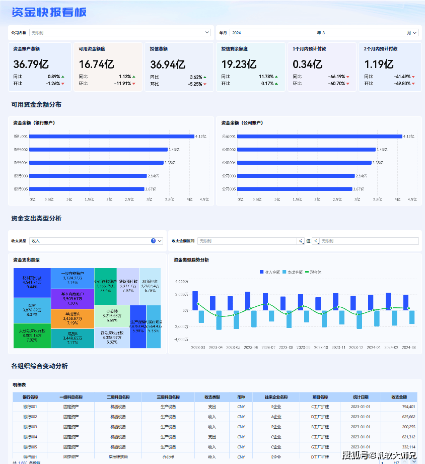 直接搭建一个可视化图表就可以!比如我这里用的是**数据分析工具FineBI**来搭建的**预算控制看板图**,想要分析每个指标可以把模块一一拆解来看,还能通过点击实现数据钻取联动操作,能帮你在预算分析上节省大把分析时间。我把这个模板链接放在这里,改改参数就能使用:https://s.fanruan.com/mbcrh