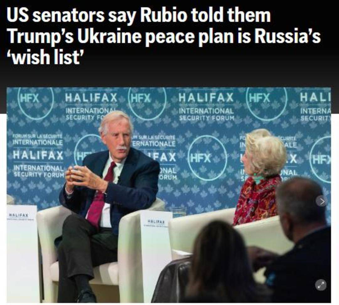 参与通话的南达科他州共和党参议员迈克·朗兹在新闻发布会上称,“这并不是我们的和平计划,而是一份我们收到的提案”,“美国仅是作为中间人分享给乌方”。然而,鲁比奥22日晚在社交媒体上否认了这一说法,坚称“该和平提案是由美国起草的”。