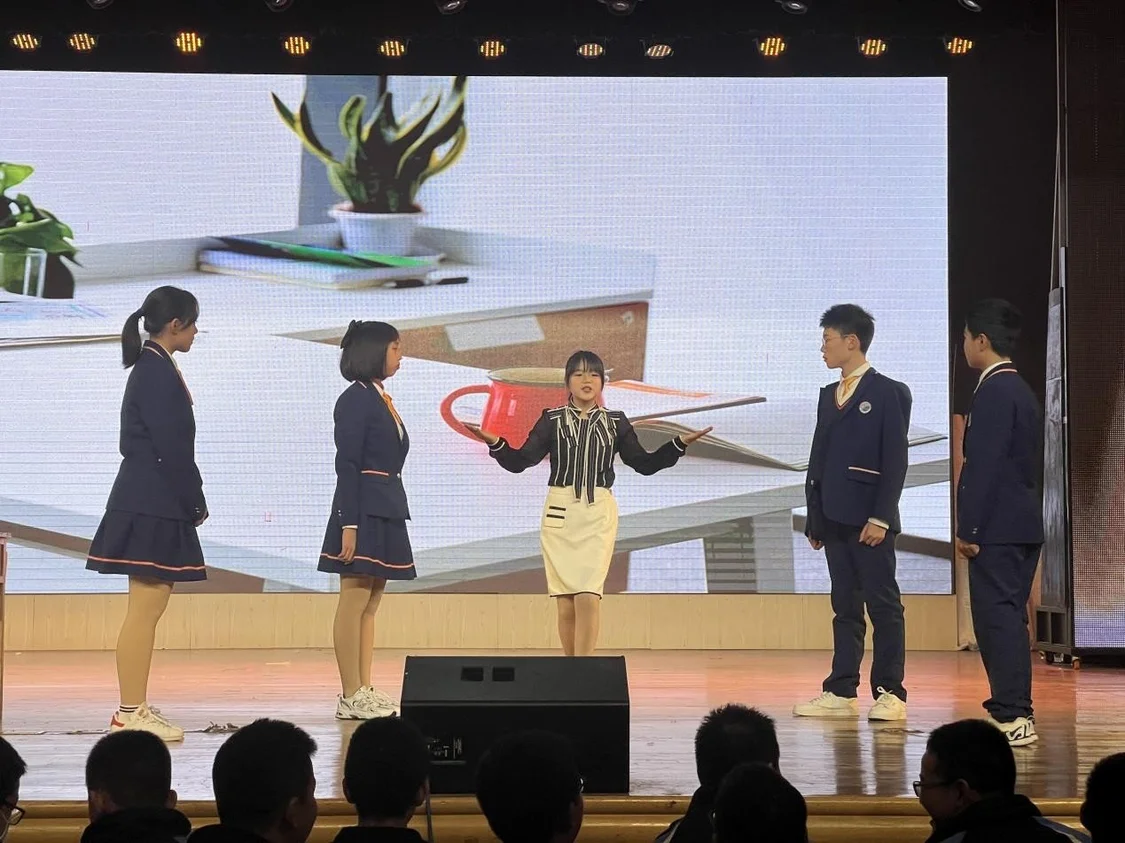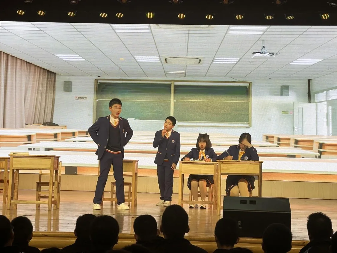 紧扣时事生活,树立正确价值观,每一次的视听盛宴都让学生们张扬个性,尽展才华!将戏剧魅力尽显无疑!课本剧表演拉进了学生与书本的距离,让大家在情境之中,可以更充分感受、领悟作品所赋予的情感与内涵,以美育人,以文化人,这也正是课本剧表演的重要价值。