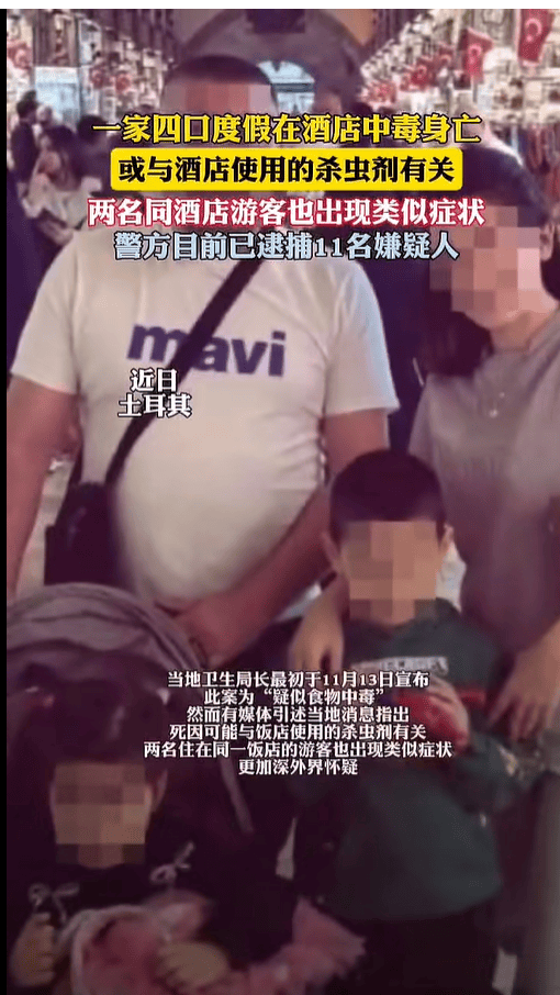 近日,在土耳其伊斯坦堡发生的惊悚悲剧再次引起公众关注。一家四口在度假期间相继离世,这起事件最初被怀疑为食物中毒,但调查方向随后转向化学农药的可能影响。