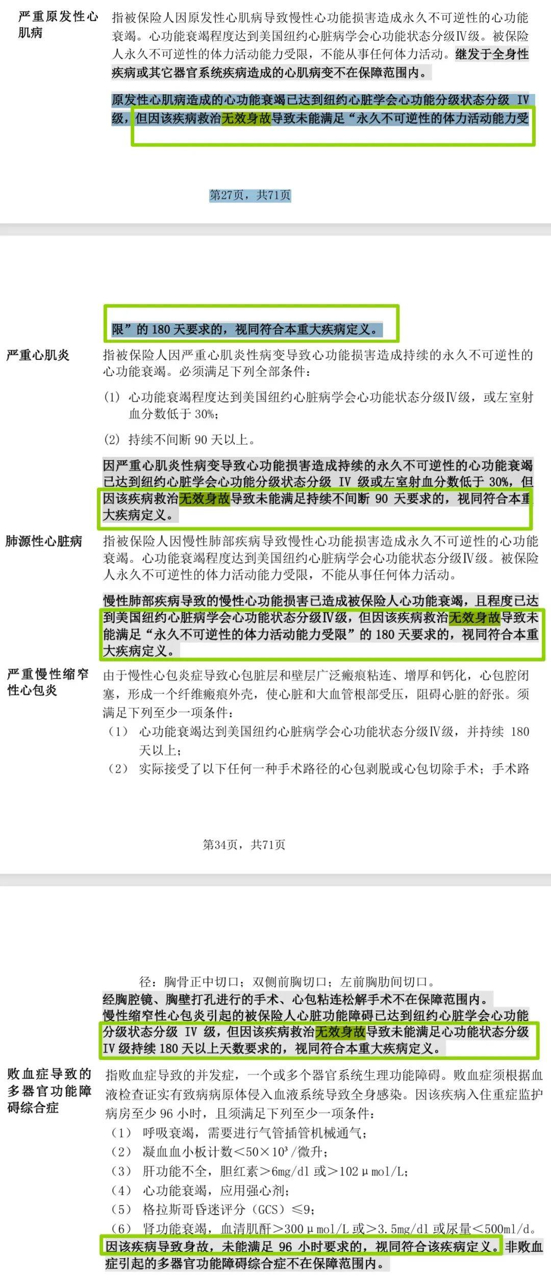 比如达到了严重心肌病的程度,且导致了身故,但并未满足持续180天时间,依旧可以获得理赔。