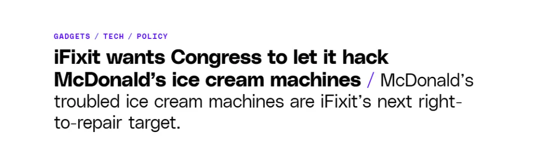不过好消息是, **“ 麦当劳冰淇淋机 ”** 这个梗,最近很有可能被维修权的铁拳给 **“ 正义终结 ”** 了。