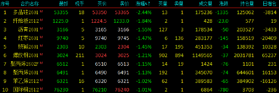 2025年11月5日,国内期货主力合约跌多涨少,多晶硅跌超2%,:纤维板(1313, 30.50, 2.38%)、:沥青(3609, -13.00, -0.36%)、:烧碱、:红枣(10400, 55.00, 0.53%)、:螺纹钢(3487, -54.00, -1.52%)、聚丙烯、:苯乙烯、:国际铜跌超1%。涨幅方面,集运欧线涨超4%,:鸡蛋(3976, -26.00, -0.65%)、:菜粕(2479, 38.00, 1.56%)、:生猪、:豆粕(3111, 18.00, 0.58%)、:豆二(3656, 14.00, 0.38%)、:豆一(4521, -21.00, -0.46%)、:纸浆(5686, -32.00, -0.56%)涨超1%。