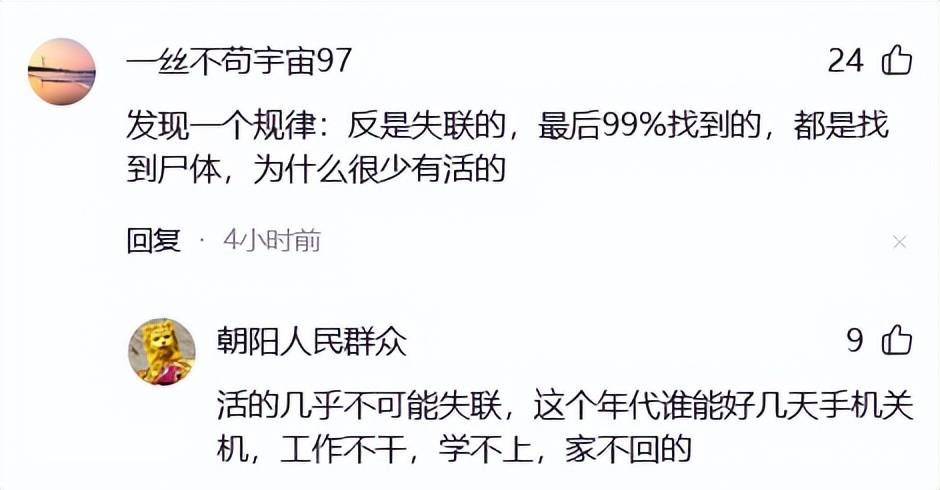 发现一个规律:凡是失联的,最后99%找到的,都是找到尸体,为什么很少有活的