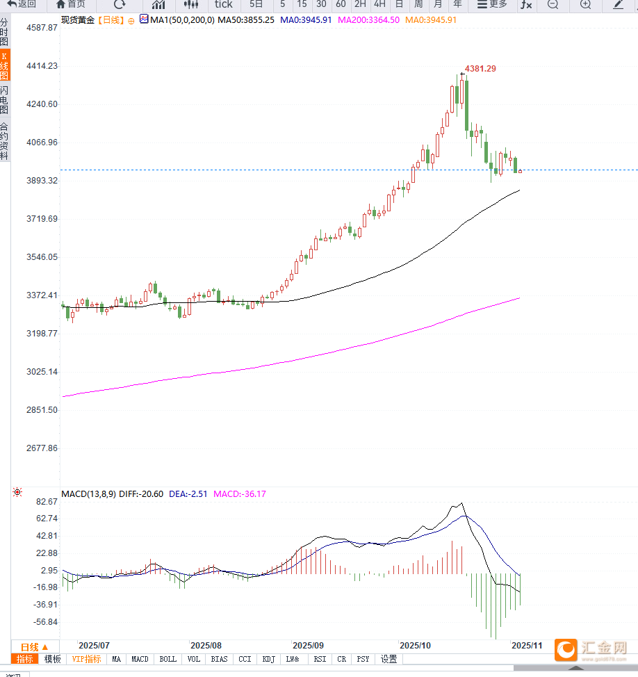 关键阻力位关注 4,000美元心理关口,若突破可进一步上探4,046美元(10月31日高点)和 4,150美元(10月23日高点)。