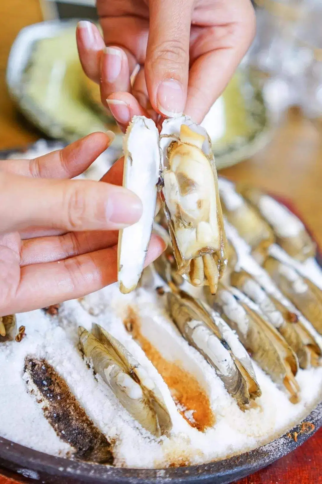 海鲜用盐焗的方式打开,更鲜嫩更鲜甜!