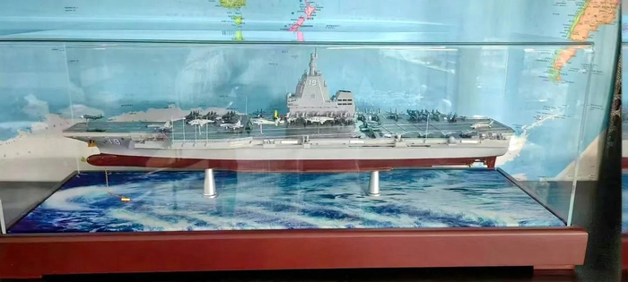 出现在2024年5月卫星图片中,被认为是“飞行甲板分段”的物体此外,报道还注意到了一些消息来源所声称的,中国正在同时研制另一艘采用常规动力的新航母,一些“未经证实的消息”称,除了上文所提的“004型”核动力航母外,中国还计划在刚刚建造过福建舰的江南造船厂研制一艘常规动力航母,在这种情况下,可能采用一种在003型基础上改进设计。报道认为,中国的造船能力使得同时研制两种不同的新航母具备合理性——003改进型常规航母拥有经过验证的设计和较低的成本与风险,而更加强大、技术更加先进的“004型”航母则伴随着相对更高的风险和成本。报道中提到了近期在互联网上出现的来源不明的模型照片,似乎与上文中提到的“003改进型”航母有关。这个很难判断是否有官方背景,但涂有舷号“19”的模型,其舰岛处结构正与在中部某地拍摄到的陆上模拟实验设施“高度相似”