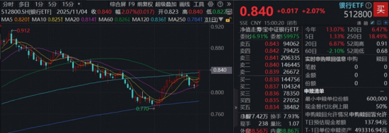 一、11月主线确立?银行逆市大涨2%,规模最大银行ETF(512800)连收四条均线,上行势头凶猛