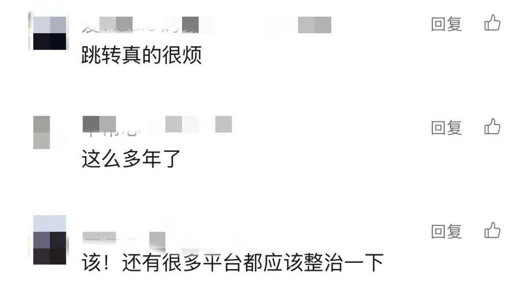 对此,网友评论称,“跳转真的很烦”“终于有人举报了”“现在是广告满天飞,查的好!”