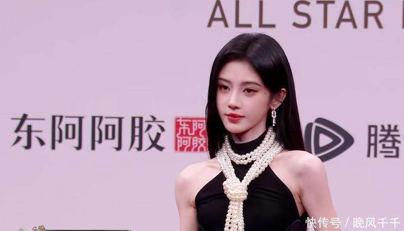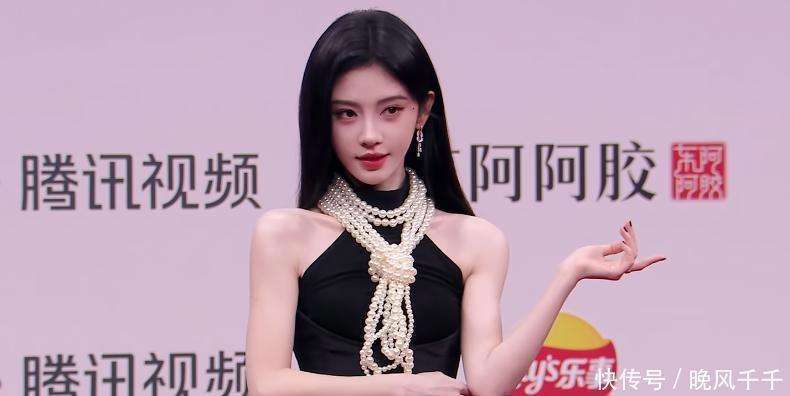 不过,鞠婧祎的脸型其实不太适合那些大气磅礴的造型。这次,她穿着一件黑色礼服,脖子上挂着一条大珍珠项链,看起来更像是围巾,设计有些夸张。
