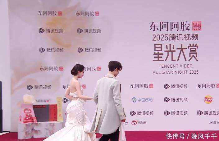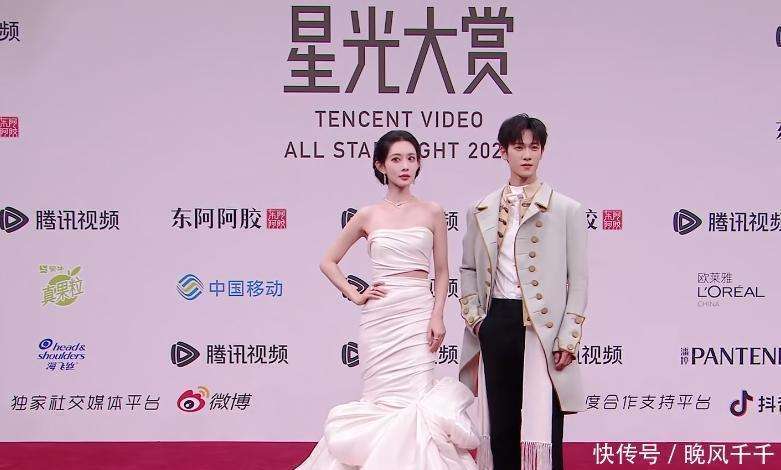 第一套礼服虽然有点老气,但凭借白鹿精致的面容,毫无瑕疵的皮肤和丰富的胶原蛋白,她的整体气质完全弥补了礼服的不足。她和丞磊站在一起,画面十分般配,也让人期待他们合作的《莫离》。