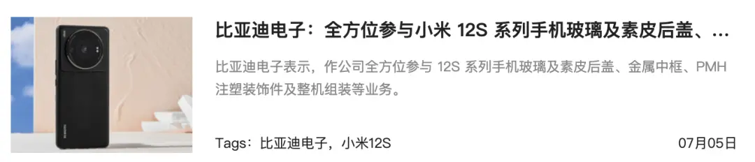 因为小米12S系列发布的时候,比亚迪也出来冒过泡。