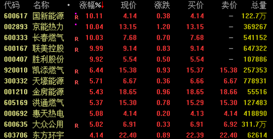 燃气、煤炭板块拉升
