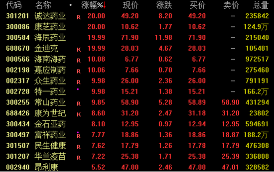 医药板块活跃